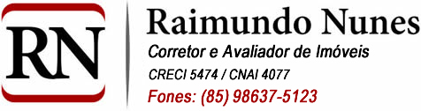 Raimundo Nunes, Corretor e Avaliador Nacional de Imóveis – CRECI – 5474-F / CNAI – 4077, atuando no mercado de Fortaleza há vários anos, sempre tendo como meta principal a credibilidade, a seriedade, a pontualidade, a transparência e a ética com seus clientes e parceiros.